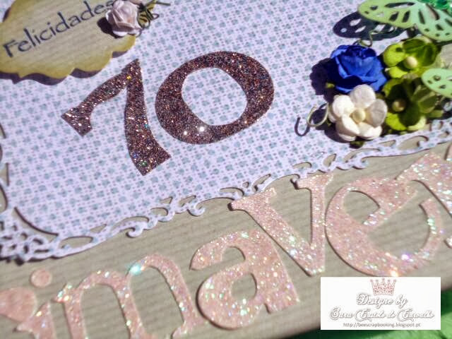 Nele a colecção de Papeis Kraft Notes da Forever Friends , cortadores Sizzix, furadores Martha Stewart, flores I am Roses, distress ink, fitas e botões Papermania e cola Stick It.